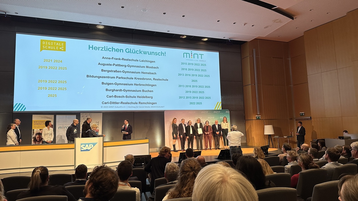 Wir freuen uns, dass das Bergstraßen-Gymnasium bereits zum fünften Mal als „MINT-freundliche Schule“ ausgezeichnet worden ist. Als eine der ersten „Digitalen Schulen“ im Land freuen wir uns über die dritte Auszeichnung in Folge als „Digitale Schule“. Damit wird das hohe Engagement unserer Schule im naturwissenschaftlichen–informatischen Bereich gewürdigt. Wir sind stolz auf diese Würdigung. Sie ist uns Ansporn für unsere tagtägliche Arbeit mit unseren tollen Schülerinnen und Schülern.