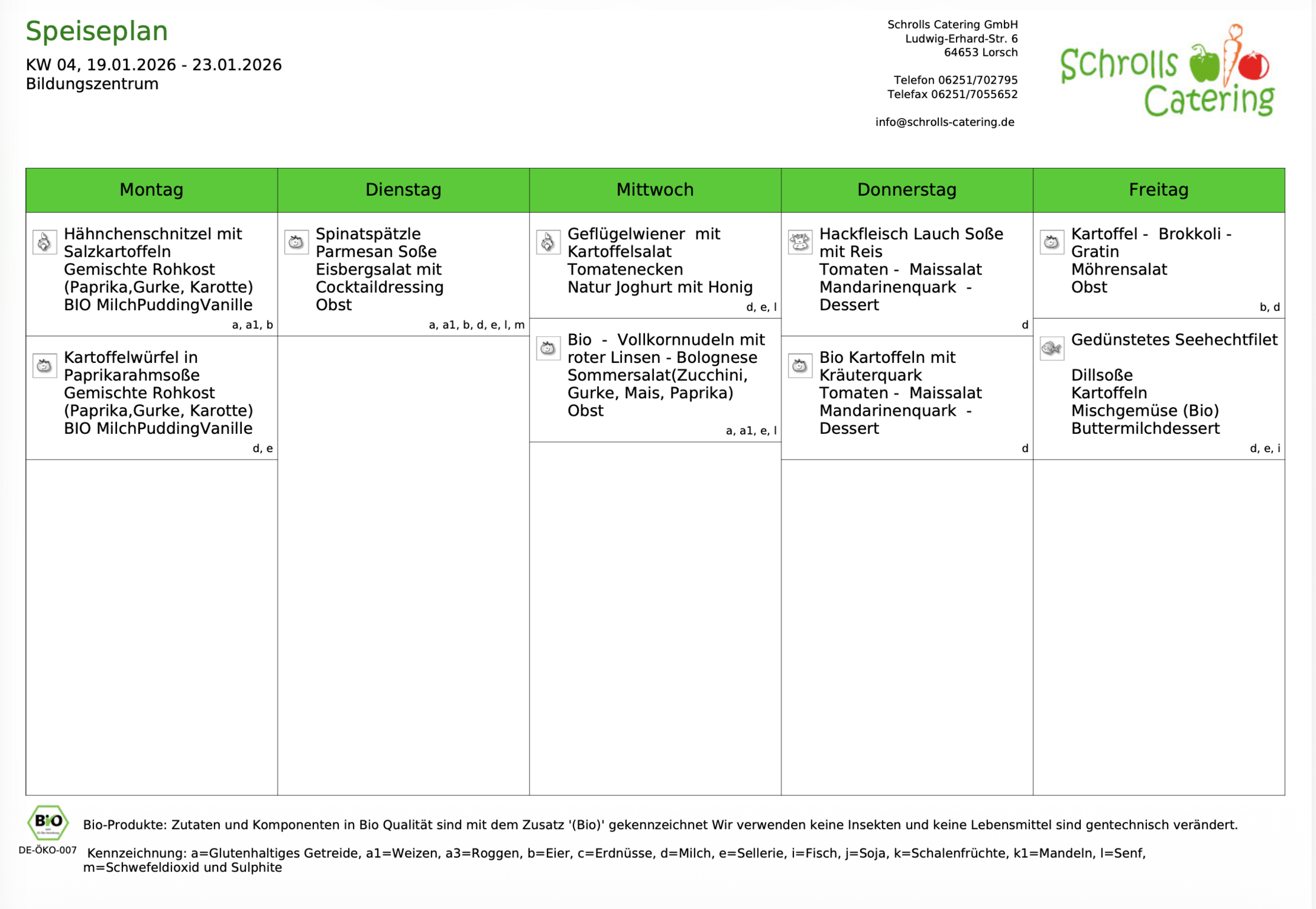 Über den Schulträger kann man sich für das warme Mittagessen anmelden. In der großen Pause findet der Bäckerverkauf statt.