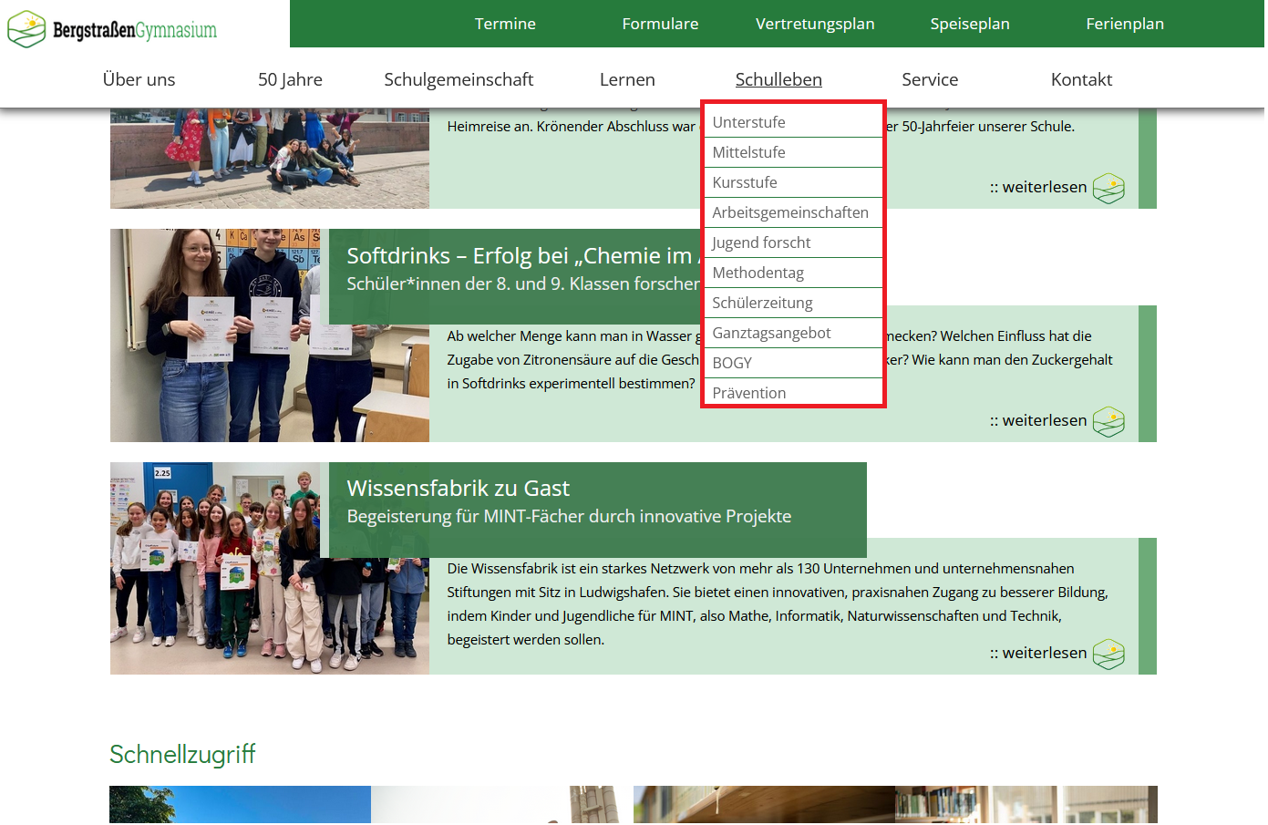 Im Bereich Schul · Leben finden Sie folgende Informationen:- Unterstufe
