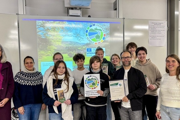 Ein weiterer bedeutender Schritt für Bildung und Nachhaltigkeit: Am 7.11.2025 wurde das Bergstraßen-Gymnasium Hemsbach offiziell als Geopark-Schule ausgezeichnet. Die Auszeichnung markiert den Beginn der Zusammenarbeit mit dem UNESCO-Geopark und zeugt von dem Engagement des Bergstraßen-Gymnasiums im Bereich Bildung für nachhaltige Entwicklung.