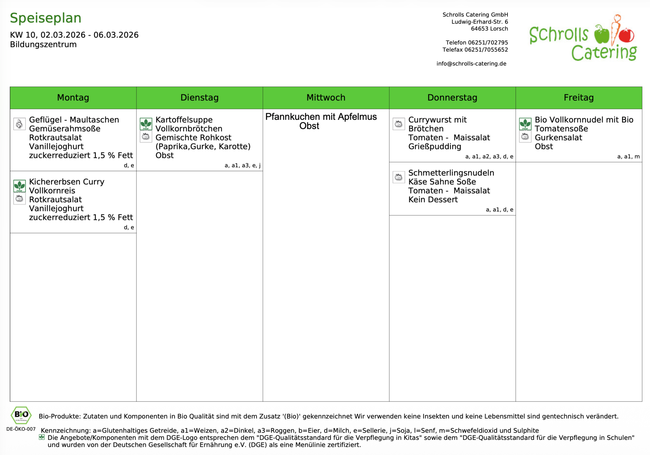 Über den Schulträger kann man sich für das warme Mittagessen anmelden. In der großen Pause findet der Bäckerverkauf statt.