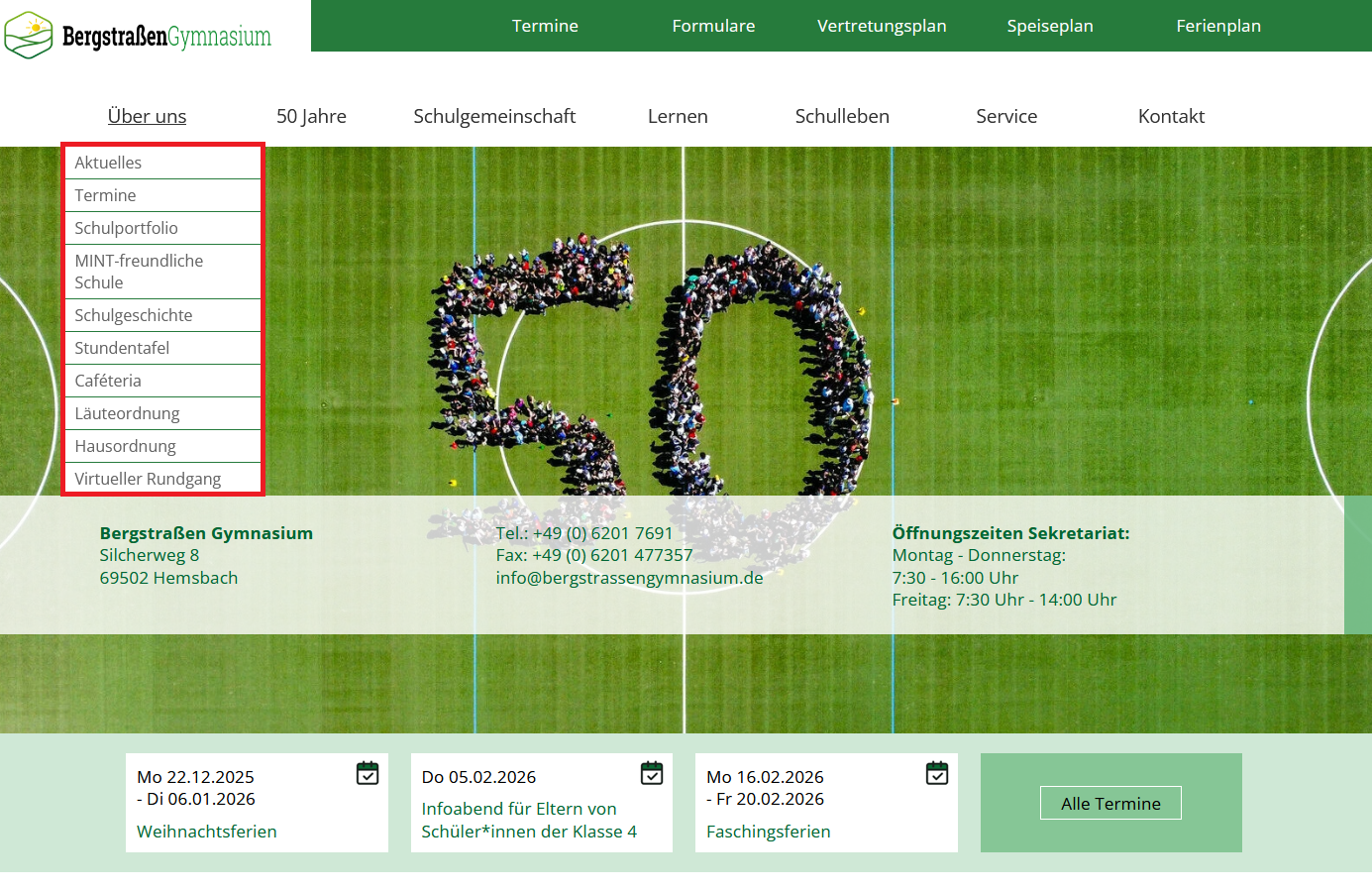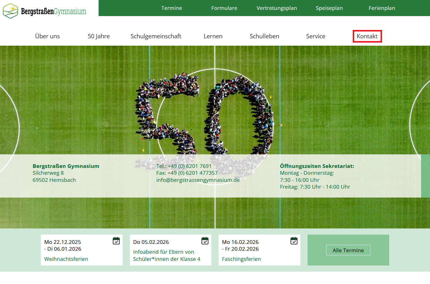 Das ist die Seite des Bergstraßen Gymnasium in Hemsbach.Die Seite wird auch Web · Seite genannt.