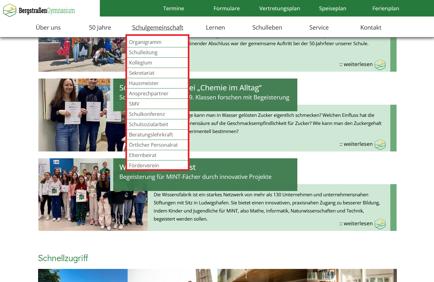 Sie finden im Bereich Schul · Gemeinschaft folgende Informationen:- Schul · Leitung